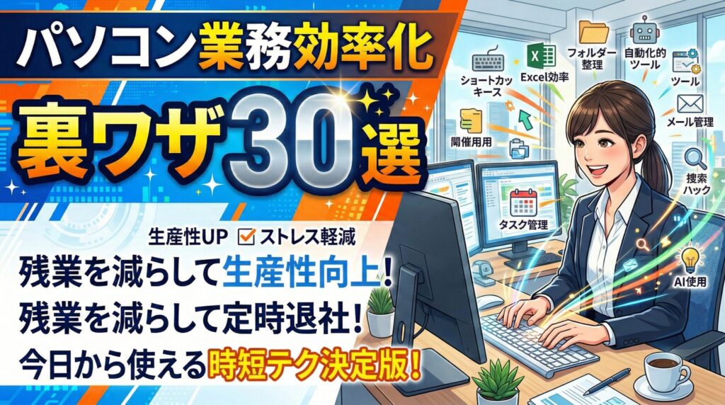 パソコン業務効率化の裏ワザ30選|ショートカットと設定だけで「1日30分」取り戻す方法